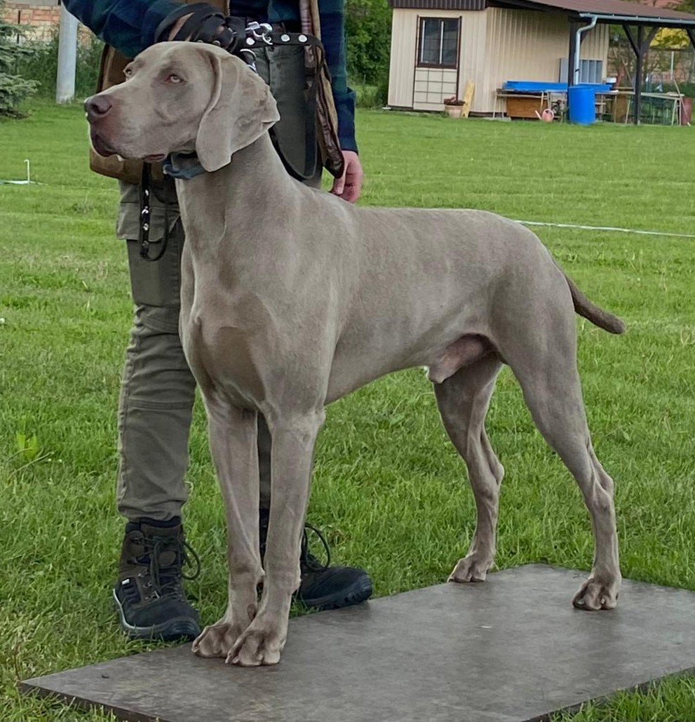 Matka Bonnie se narodila v naší chovatelské stanici. Je Šampionem práce pro lovecký výkon a prvním Výmarským ohařem, který vyhrál 46.ročník Memoriaĺ Richarda Knolla.